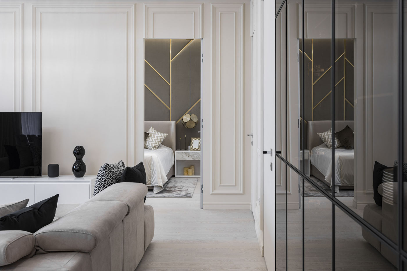 Even if we have introduced classical elements, we have preserved the modern atmosphere of the space, creating an up-to-date home that will keep up with the young spirit of the owners.