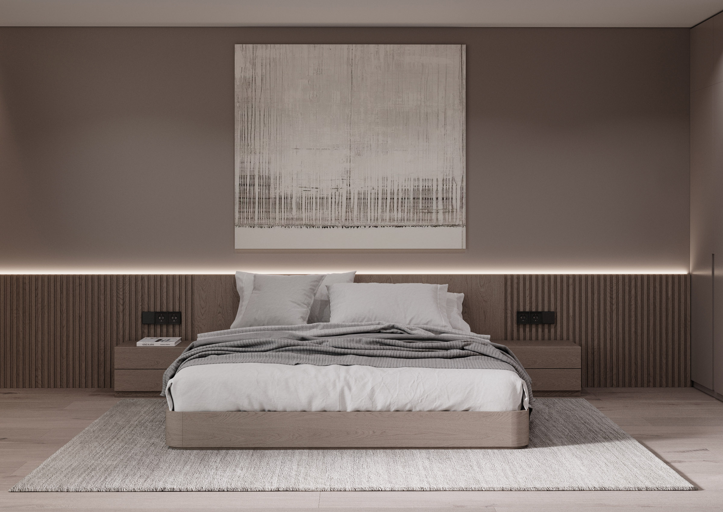 For the bedrooms we have chosen to create an atmosphere of total calm. We kept the same three basic colours: white, beige and grey, excluding the eccentric décor and relying on the simplicity of the premise arrangement that offers the possibility to relax without allowing the details to distract your attention.