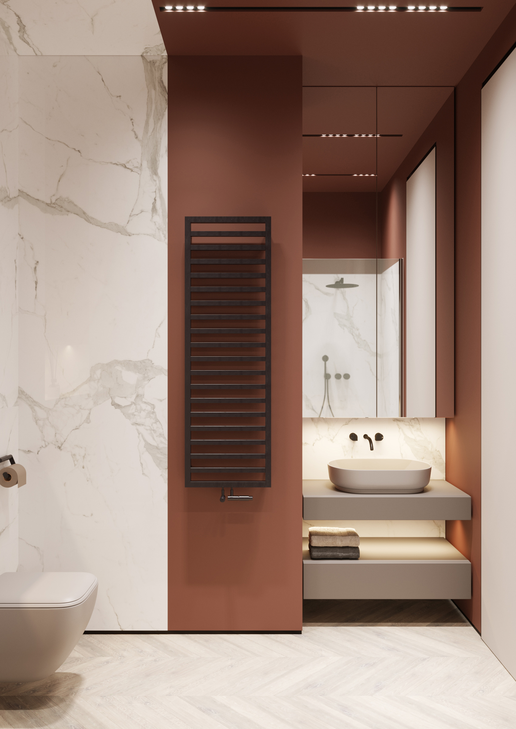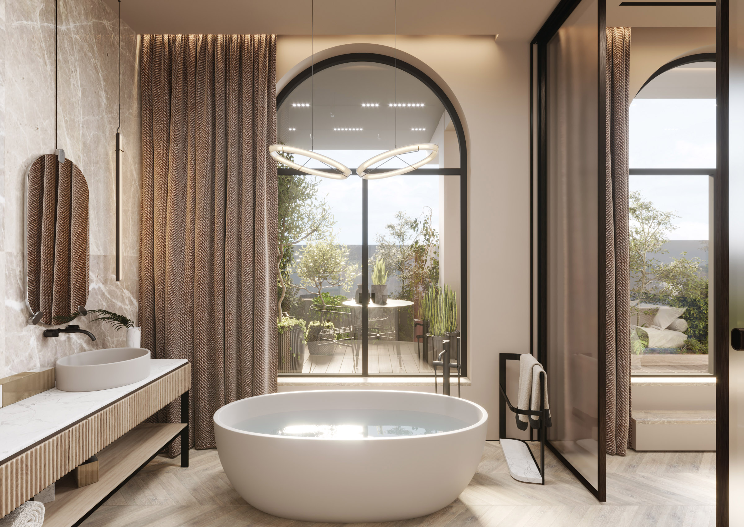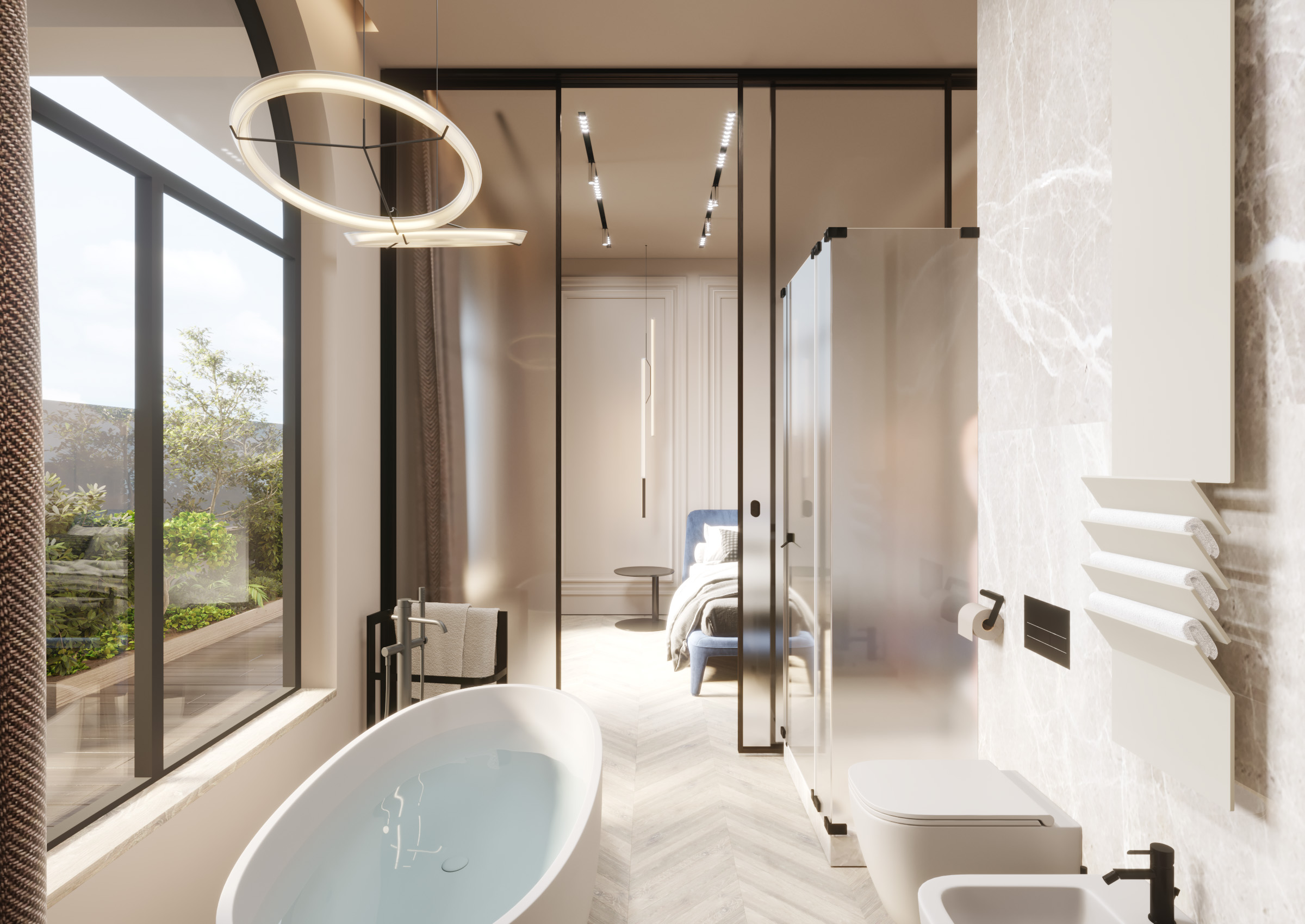 Thus, we have created an elegant overall atmosphere, without opulent details. Modern lines and neutral hues make the design of the house modern and comfortable as well as offer privacy.