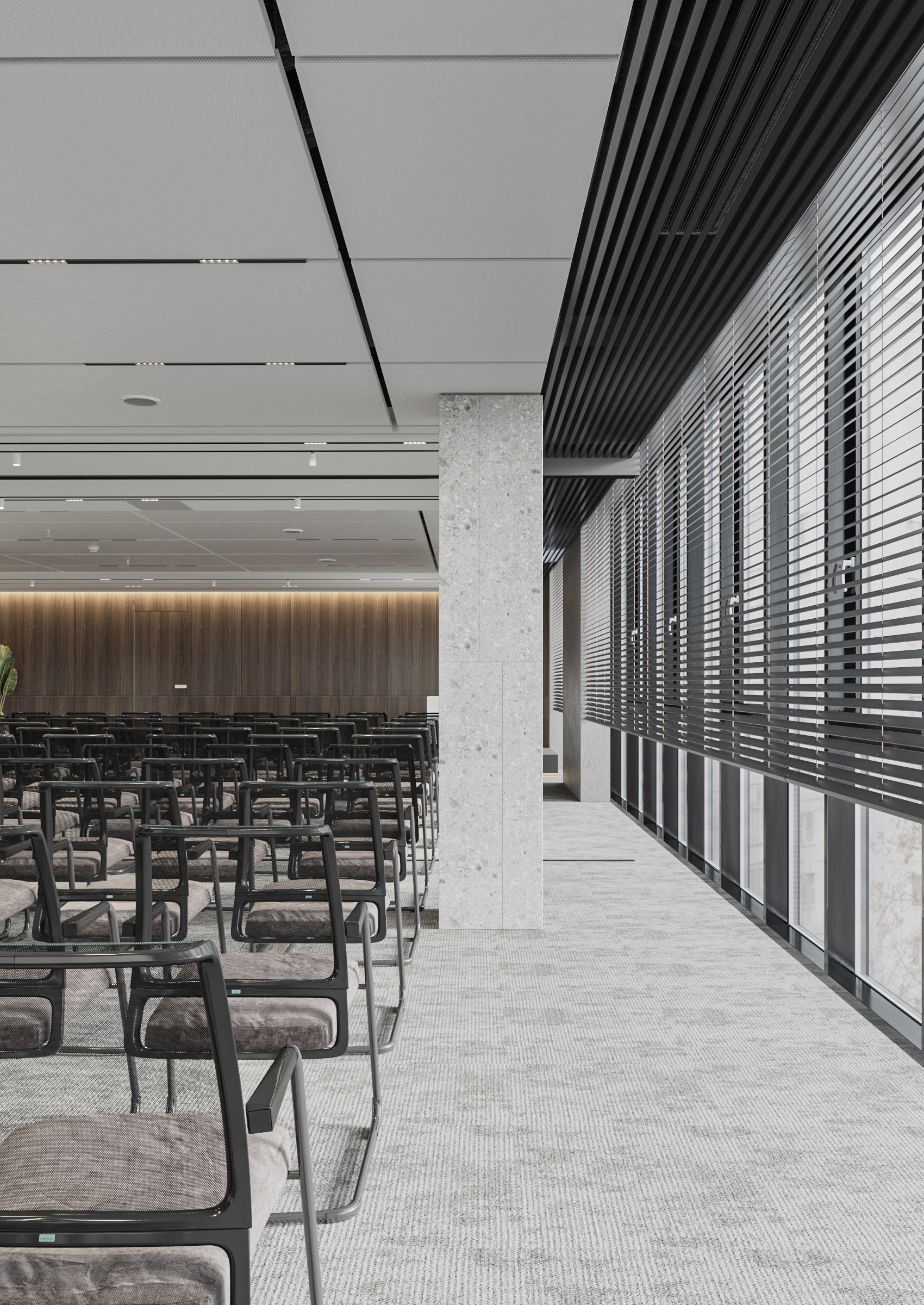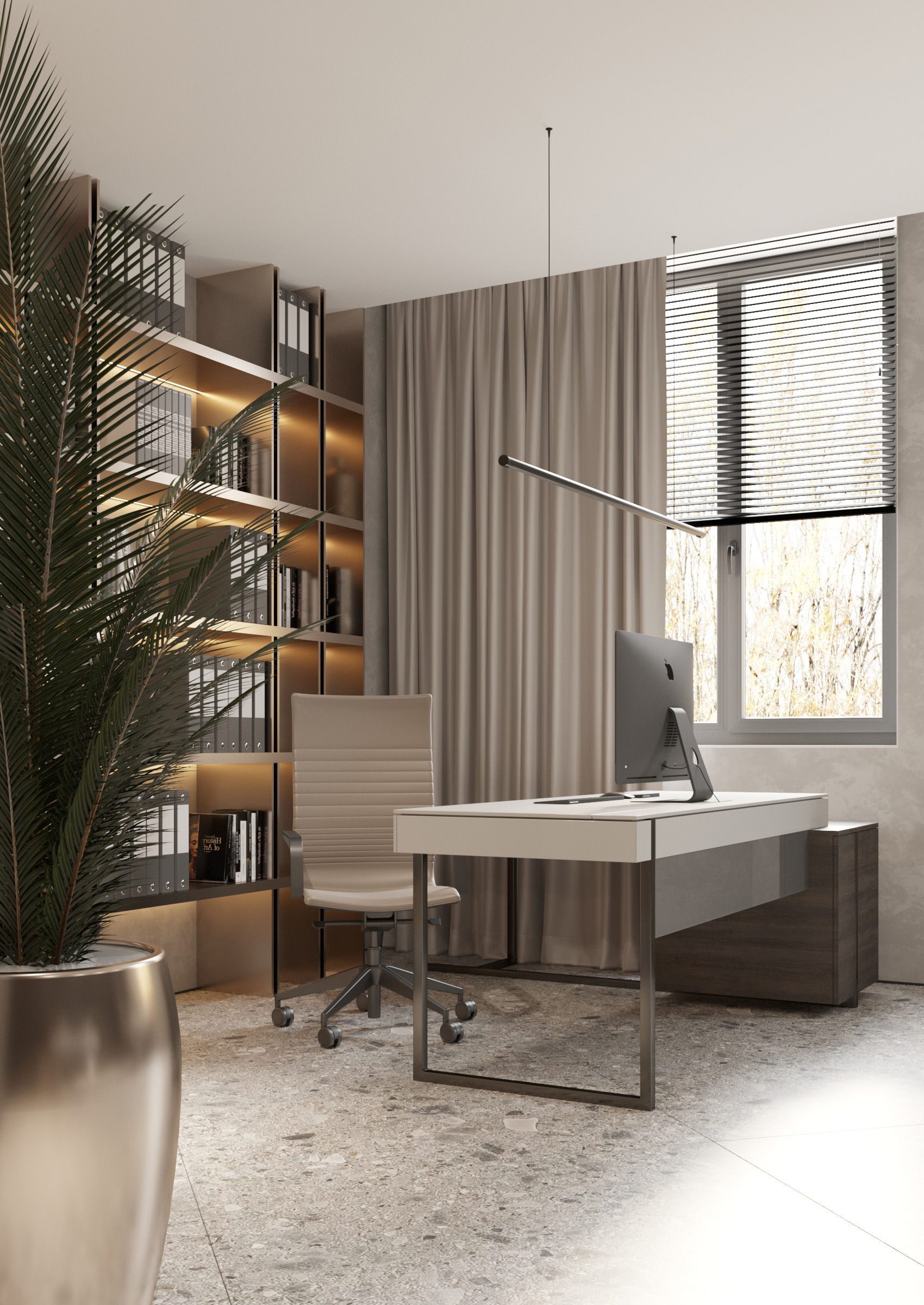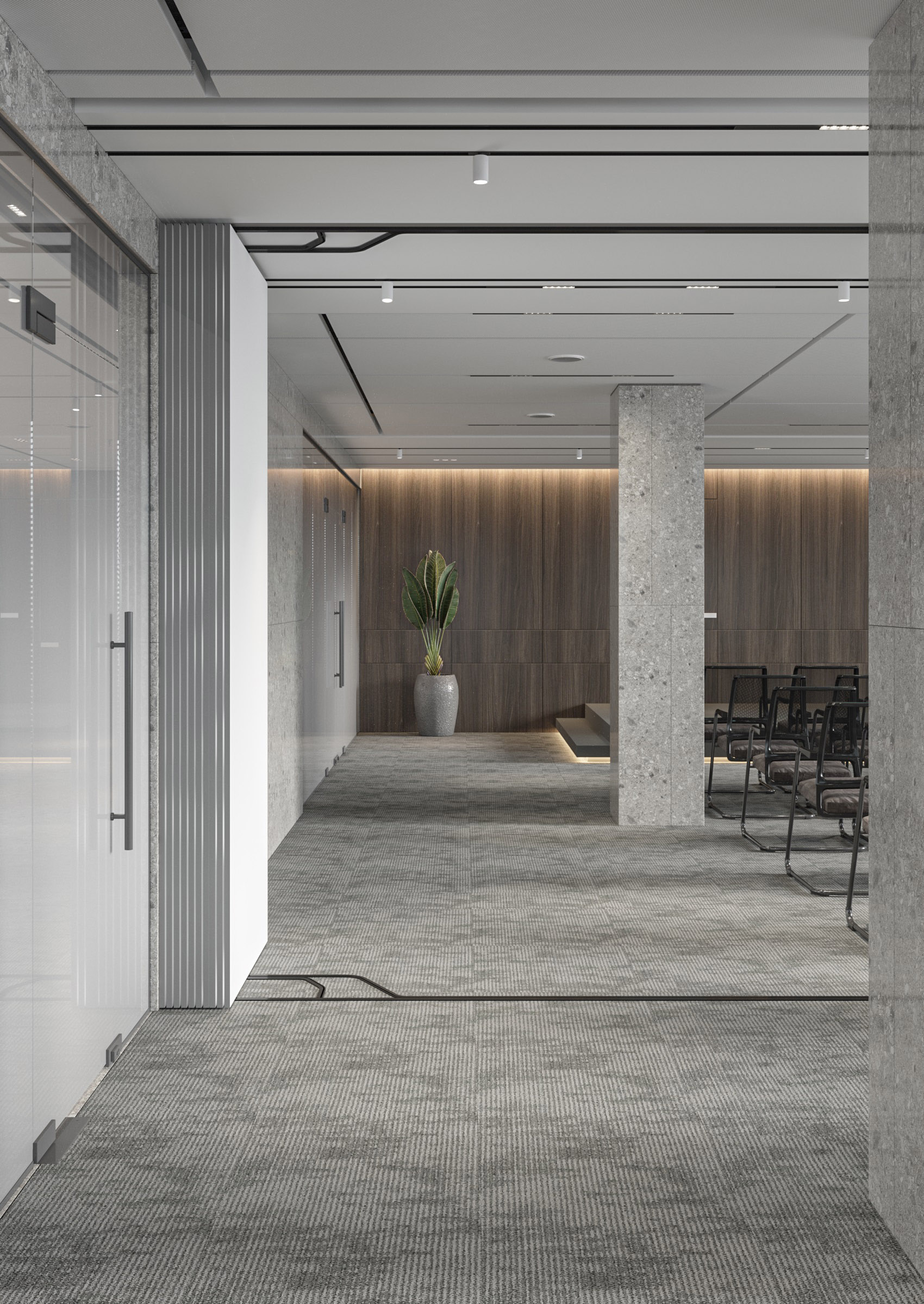 If in the case of residential projects the main stake is the comfort of the customer, in the case of office space design, the goal is to obtain an image that would convey the company’s message to the clients alongside with the comfort for employees. To achieve this, we followed the idea of using concise lines, which do not distract attention, creating calm and large spaces whose simplicity denotes professionalism.