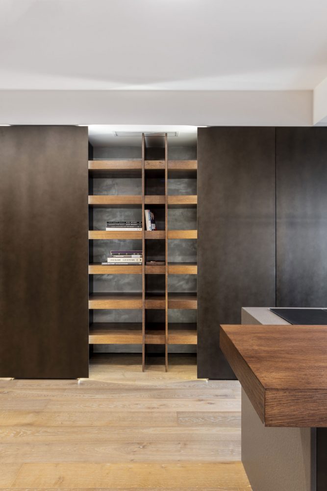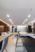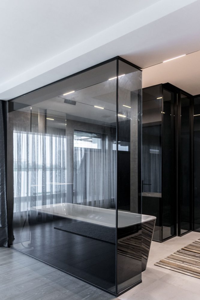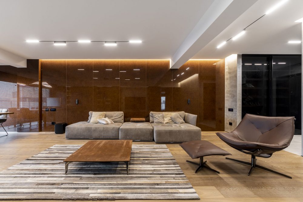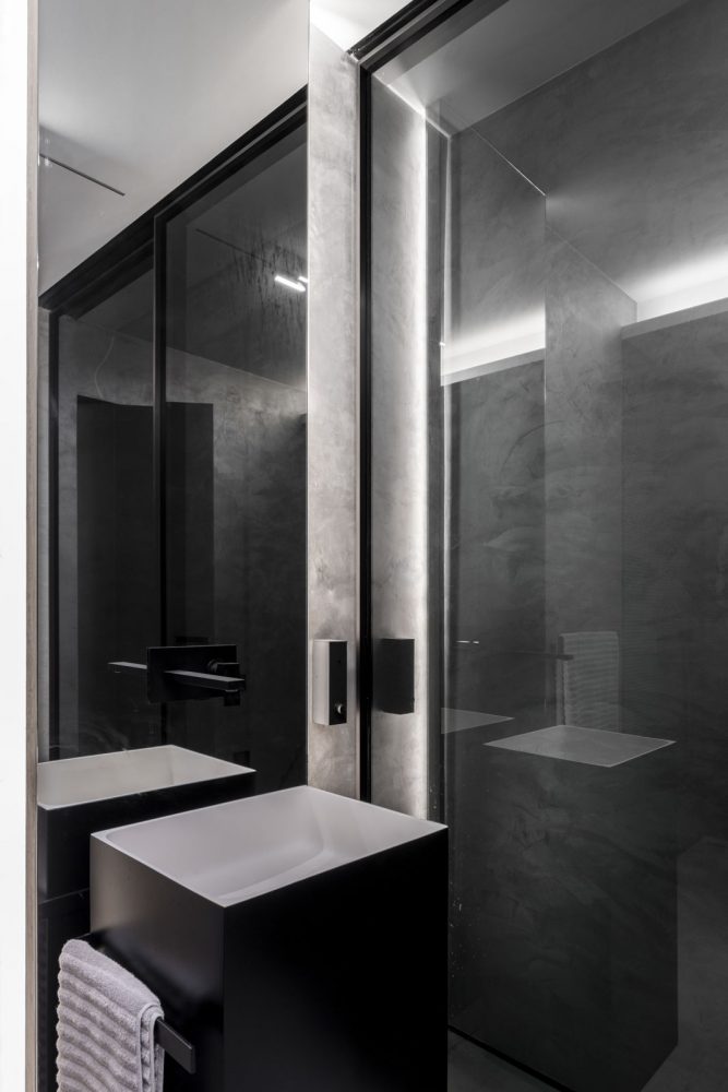 Fără elemente de decor opulente și lipsit de culori stridente, proiectul Shades of Black este un exemplu de spațiu ergonomic și relaxant în același timp. Concizia liniilor utilizate, severitatea culorilor și amenajarea strategică a corpurilor de iluminat creează un interior spațios și confortabil. Unul dintre elementele cheie a interiorului este jocul de texturi. Deși pare simplu, spațiul capătă un aer nobil datorită structurii calde pe care o oferă lemnul, dar și pieselor de mobilier tapițate cu nubuc și piele.