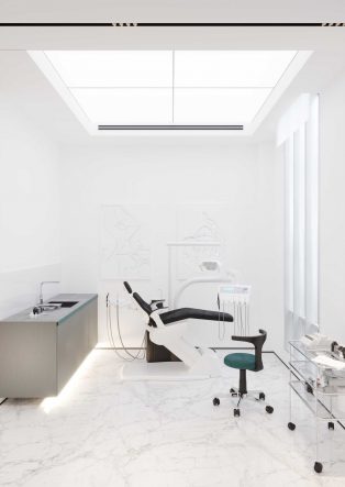 Întregul concept al clinicii stomatologice Dentissimo a fost creat ca o concentrare dintre minimalism, linii simple și senzația de sterilitate. Dat fiind faptul că logo-ul este unul dintre principalele elemente reprezentative ale identității, acesta a fost elaborat urmând rigorile generale ale proiectului. Drept accent de culoare, în care a fost elaborat și logo-ul, a fost ale turcoazul. Fiind o culoare rece, acesta se asociază cu un mediu curat și o atmosferă sterilă și exprimă perfect mesajul caracteristic unui astfel de proiect. Semnul, având un aspect tridimensional, reprezintă un molar construit geometric cu ajutorul rețelei compusă din figuri geometrice circulare; iar formele sale sunt moi și au o plasticitate organică, ceea ce ar stimula în psihicul consumatorilor o stare de calm. Pentru a fi ușor memorabil, semnul este simplu și minimalist în detalii.