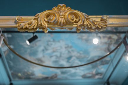 Am păstrat intacți structura de bază a clădirii, însă am intervenit la nivel de finisaje. Pentru a păstra autenticitatea, am demontat mocheta de pe pardoseală și am restaurat parchetul, eliminând de pe el straturile de vopsea multiple. De asemenea, am eliminat tapetul de pe pereți, finisându-i cu o culoare nobilă fără a ascunde defectele timpului. Am încercat să revigorăm istoricitatea clădirii, inspirându-ne din clădirile nobile italiene ale Renașterii, am introdus in interior fresce pe tavan. Imaginile renascentiste creează o atmosferă unică, combinate cu culoarea zidurilor, ele creează o ambianță caldă, armonioasă și confortabilă.