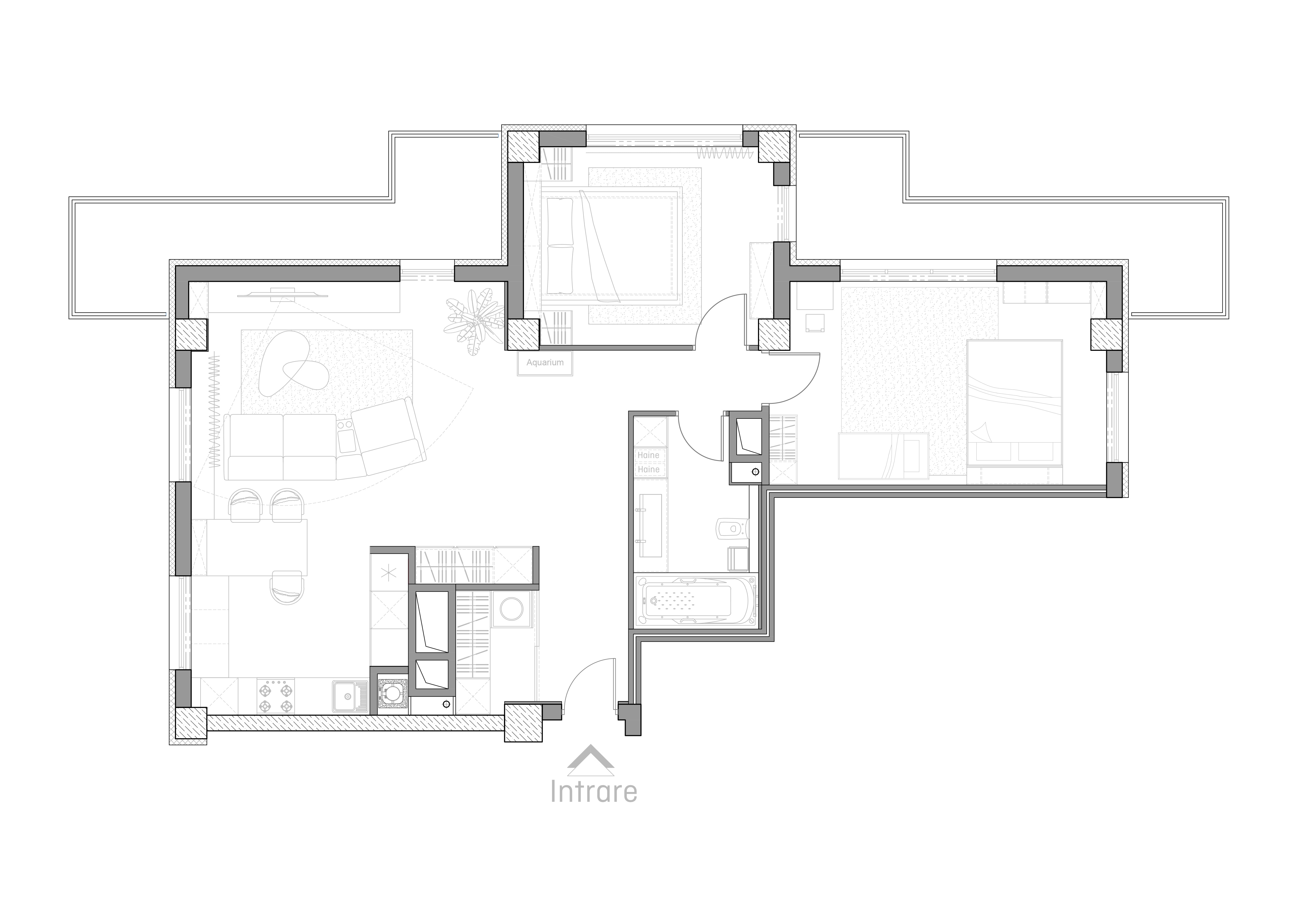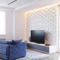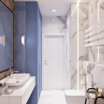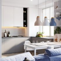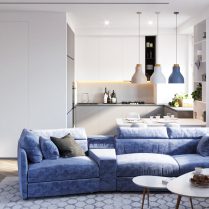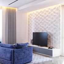 Мы хотим не только создать индивидуальное пространство для каждого клиента, но и настоящее убежище от повседневной жизни. Это одна из отправных точек наших проектов, поэтому мы всегда стремимся придать нашим жилым помещениям свободу. Это было и в случае с проектом, представленным ниже, в котором мы использовали много белого, много света и простоту линий. Гостиная и столовая становятся единым пространством благодаря использованию спокойных оттенков, а диван благородного синего цвета становится точкой, вокруг которой сосредоточена дневная зона. Здесь мы также оживили стены с помощью декоративных модулей — одного из самых современных акцентов в интерьере.