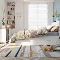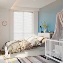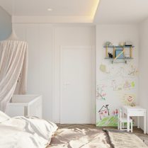 Простота сохраняется во всем доме благодаря дизайну, построенному в одном и том же ключе, основанном на идее спокойствия. Мебель в спальнях следует тем же простым линиям, а не броская мебель для хранения гарантирует функциональность и аккуратность интерьера. Дерево и ковры являются элементами, которые согревают атмосферу во всем доме и делают ее расслабляющей. Мы отказались от чрезмерного декора, но внесли некоторые элементы творчества, а именно картины, которые призваны создать расслабляющее и созерцательное семейное пространство. Таким образом, квартира стала идеальным местом для отдыха, где простота, спокойствие, креативность и тепло сочетаются друг с другом.