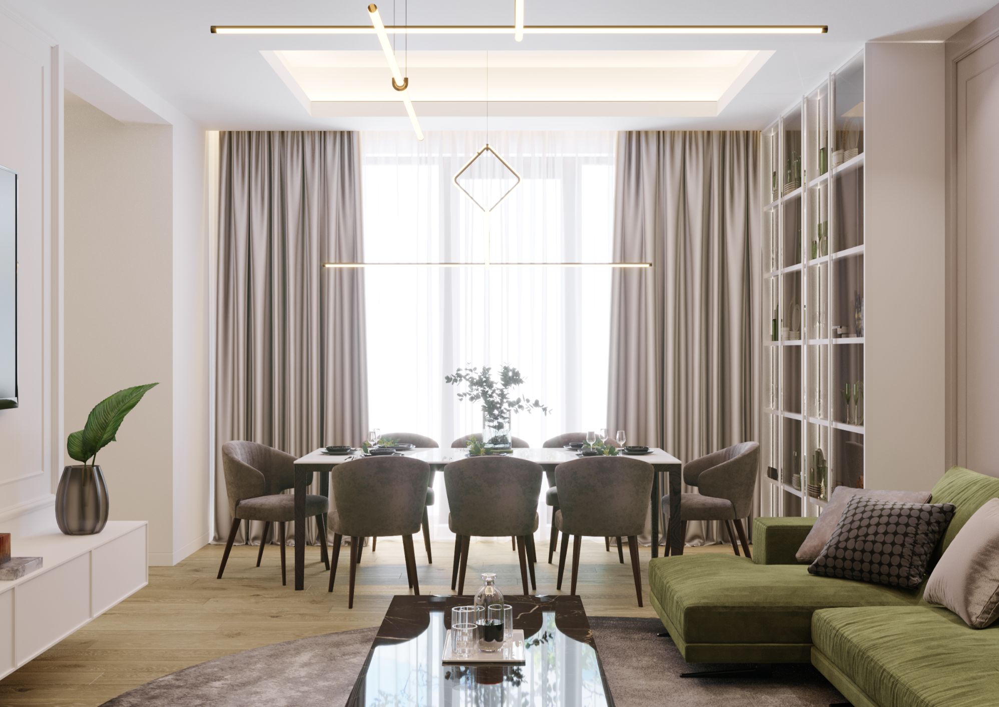 Сочетая предпочтения хозяев с актуальными тенденциями, мы выбрали минималистский стиль с тонкими неоклассическими нотами.