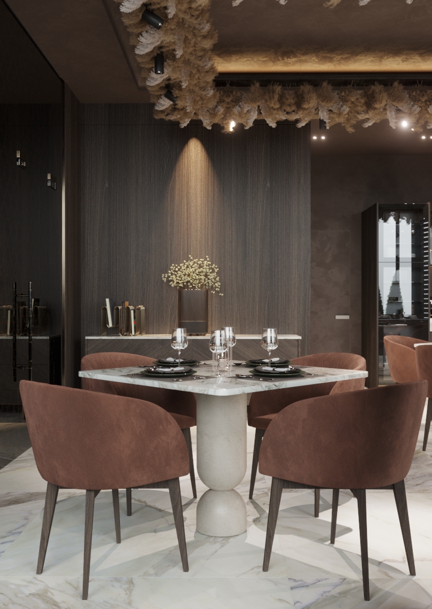 Сложность проектов, объединяющих общие и индивидуальные пространства, всегда представляет собой вызов, в котором уединенность должна идти рука об руку с общим спокойным, теплым и благородным настроем. На этот раз главной ставкой было передать аутентичность страны посредством современного дизайна. Для достижения этой цели мы черпали вдохновения из произведения Брынкуш, тонко интегрируя в пространстве множество символов и мотивов.