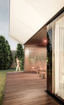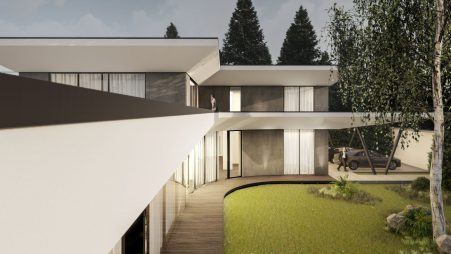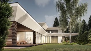 Проект Городская вилла — это как глоток свежего воздуха. Этот просторный и полный воздуха дом является ярким примером современной архитектуры. Мы осмелились оторваться от привычных прямоугольных форм и придать ему мечтательную форму двух крыльев, готовых к полету. Светлые тона, открывающийся наверх навес и огромное пространство способствуют ощущению свежести и воздушности.