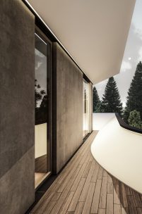 Второй этаж дома был отведен для спален, у каждой из которых есть собственная терраса, что гарантирует уединенность и личное пространство. Меньший по площади, чем первый этаж, второй этаж позволил обустроить зеленую зону на террасе, чтобы слияние с природой, которое было подчеркнуто в активной зоне, продолжалось и здесь.