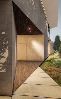 Несмотря на открытый внутренний дворик, который является продолжением жилой зоны, навес для парковочных мест и террасу для размещения гостей с отдельным входом, двор сохраняет свою простоту. Простые архитектурные линии были точно сохранены в каждом из элементов, что позволило нам гармонично интегрировать их в концепции.