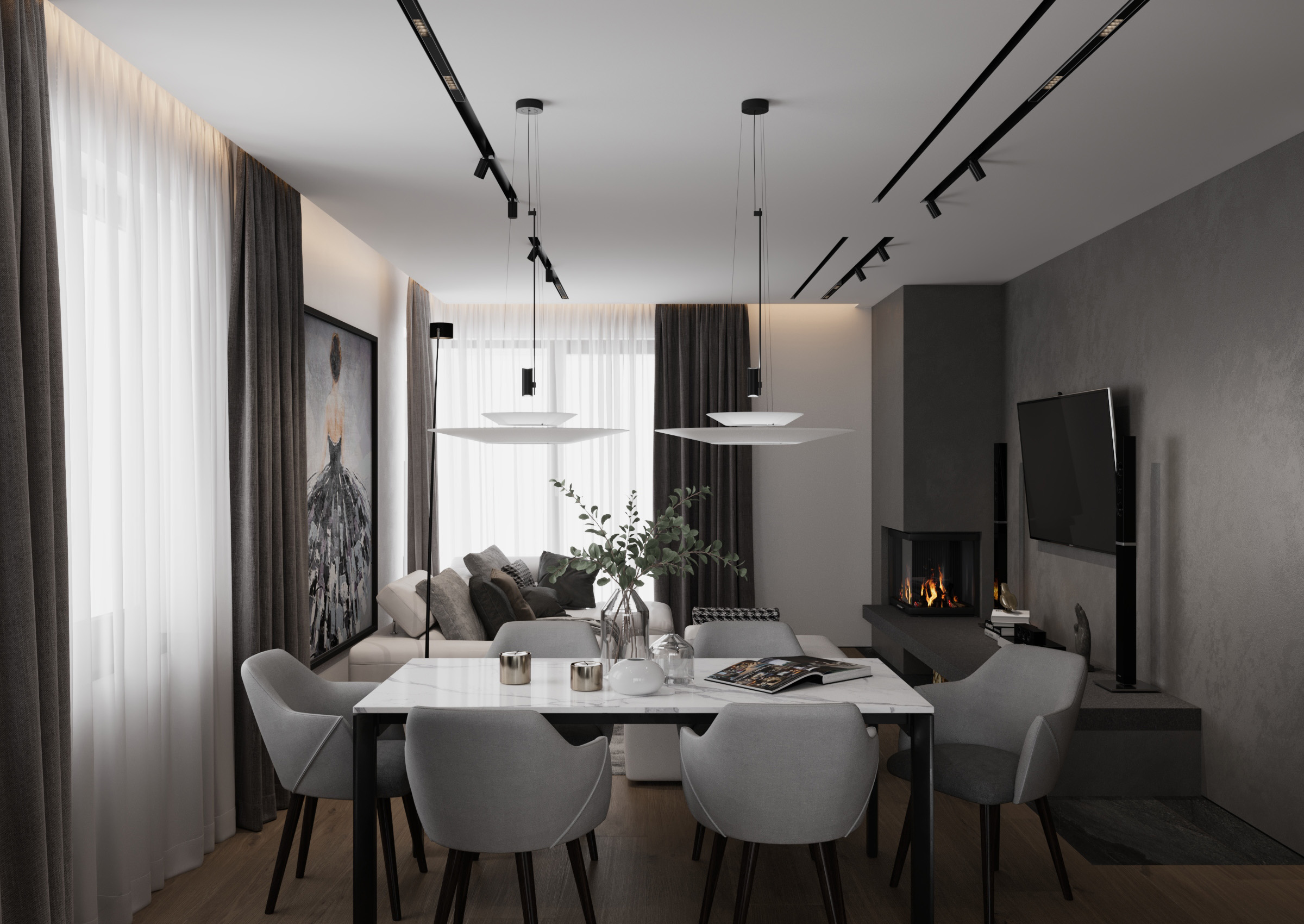 Строгие линии, подчеркнутые хроматической простотой. Представленный ниже проект иллюстрирует гармонию между белым, черным и серым. Мы задействовали опыт и игру текстур, которую подчеркнем лаконичной цветовой линией, преобладающей во всем доме. Широкие окна наполняют интерьер естественным светом, а отсутствие лишних деталей создает ощущение свободы.